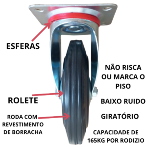 RODIZIO GIRATORIO COM FREIO CAP 200KG LIXEIRA CONTAINER