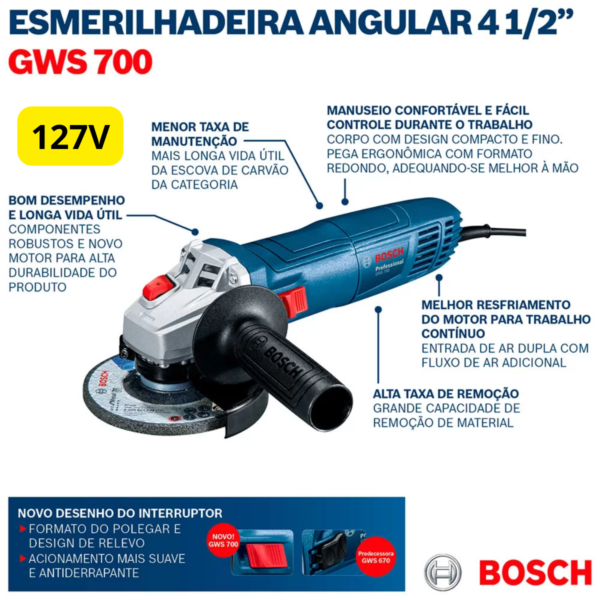 ESMERILHADEIRA 4.12 GWS 700 710W 127V BOSCH